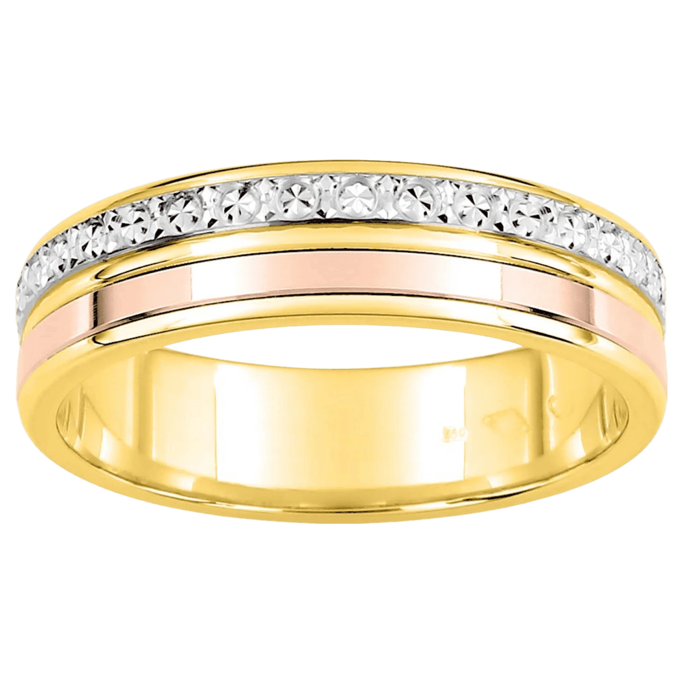 L’or jaune apporte chaleur et tradition. L’or rose ajoute douceur et modernité. L’or blanc, quant à lui, offre une brillance nette et contemporaine. Ensemble, ces trois nuances créent une alliance équilibrée, lumineuse et facile à porter. Ce modèle convient aussi bien aux femmes qu’aux hommes, car son style reste sobre, élégant et intemporel.
