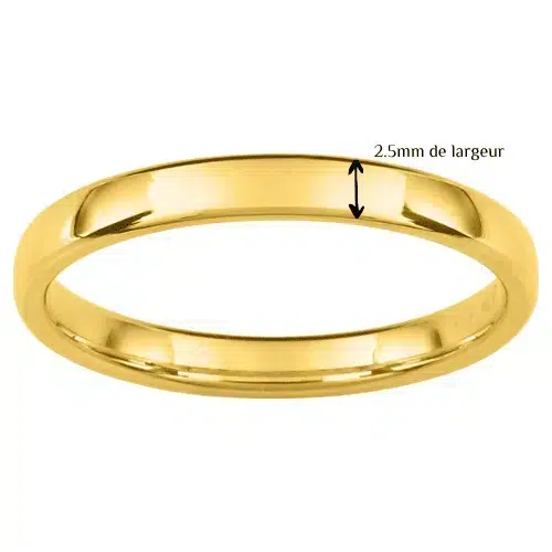 En résumé, l’alliance demi‑jonc confort 2,5 mm or 18k allie sobriété, confort et élégance. Elle traverse les années sans perdre de son charme. Elle symbolise l’engagement avec finesse et authenticité. C’est un modèle idéal pour un mariage moderne, simple et raffiné.