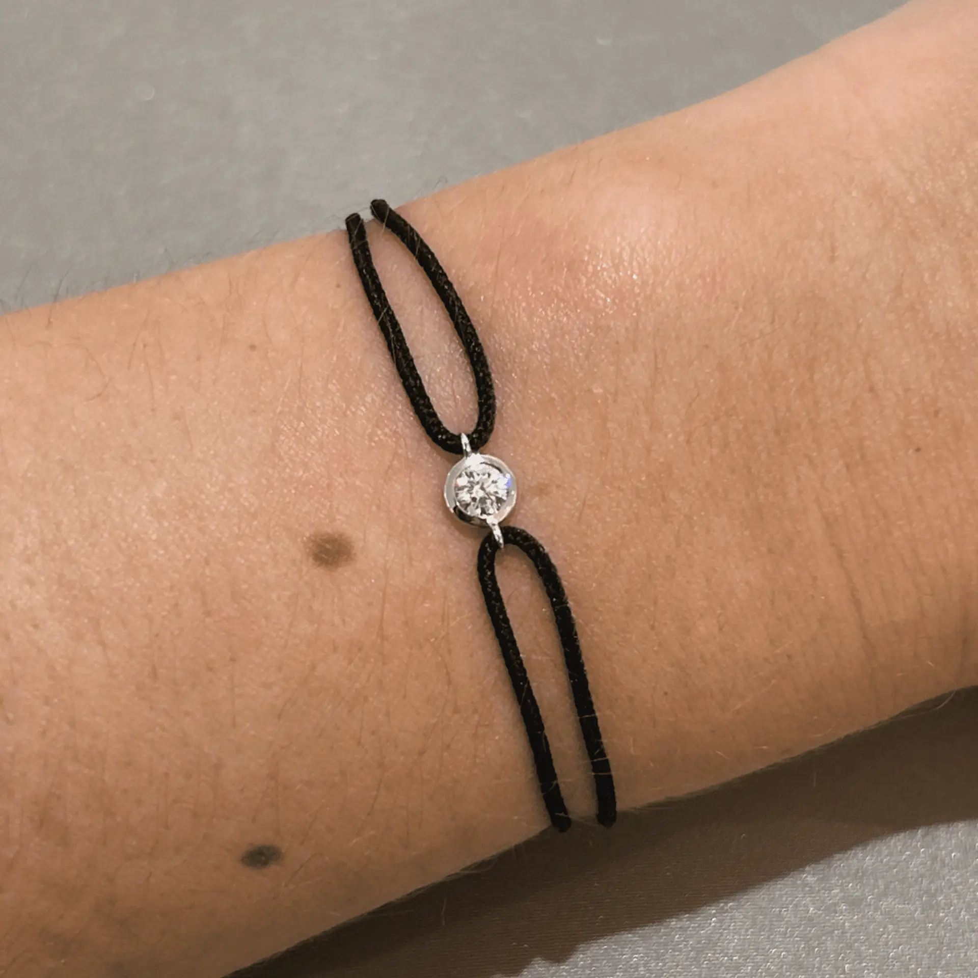 Avec ce bijou, chaque détail compte. L’or blanc 750/000 ajoute une touche de luxe et de modernité. Il complète le diamant de synthèse tout en créant un contraste subtil avec la douceur du cordon. En plus, le cordon s’ajuste aisément à votre poignet, garantissant un confort optimal en toute circonstance.