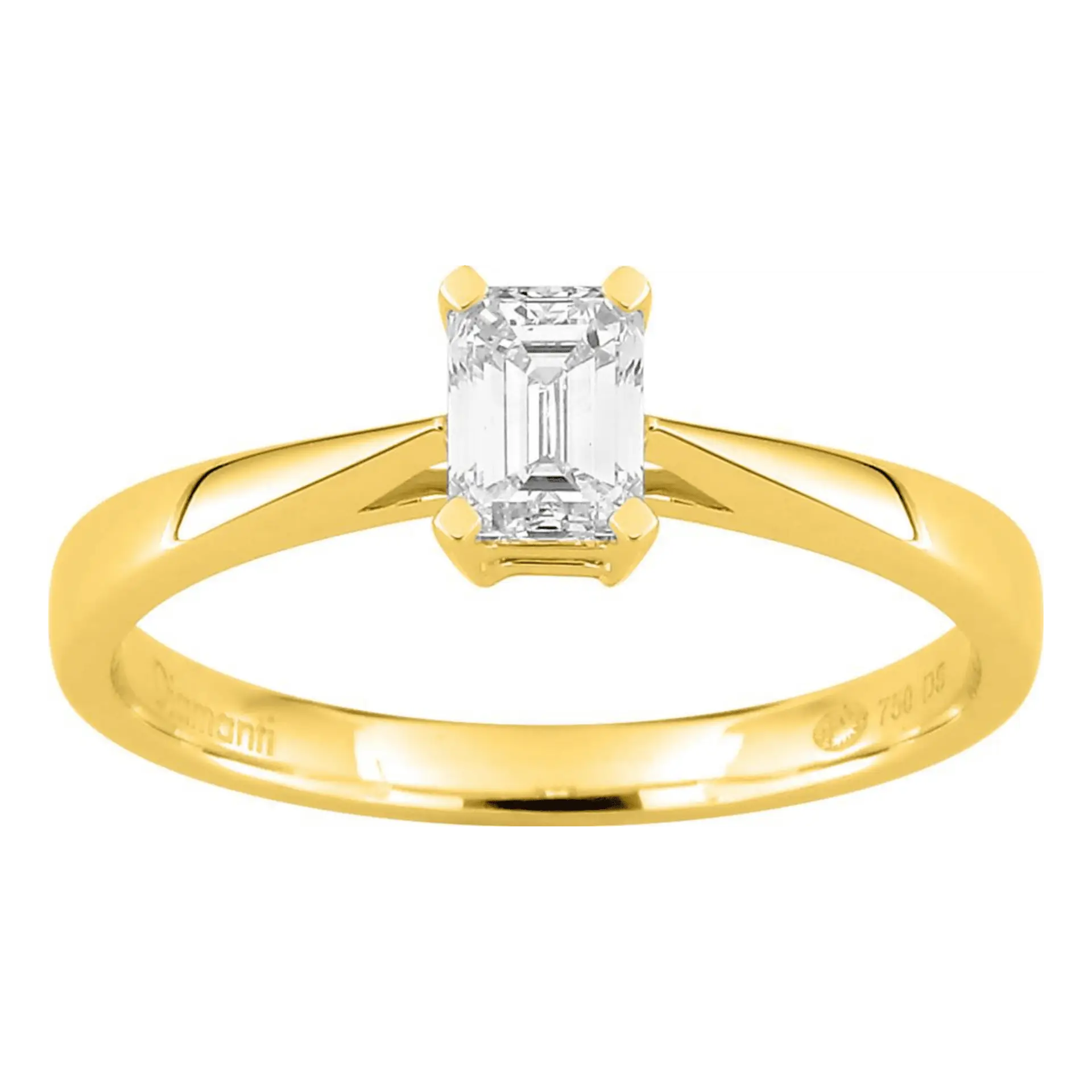 Ce solitaire en or 750/000 et diamant de synthèse taille émeraude allie modernité et éthique. Son design élégant attire immédiatement l’attention, avec une monture délicate en or 750/000 qui met en valeur la pierre centrale. L’or 750/000 garantit une robustesse exceptionnelle tout en conservant une brillance naturelle qui dure dans le temps.