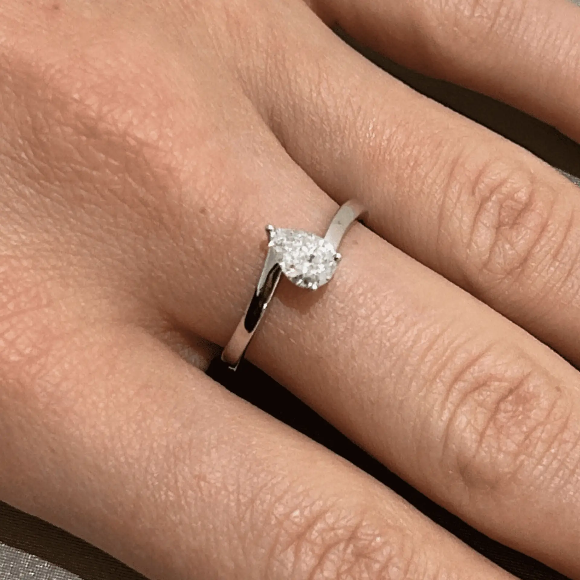 La forme poire combine une extrémité pointue avec une extrémité arrondie, créant un effet allongé. En conséquence, elle donne l’illusion de mains plus élancées et de doigts plus fins. Cette forme est élégante et sophistiquée, ce qui en fait un excellent choix pour un solitaire.